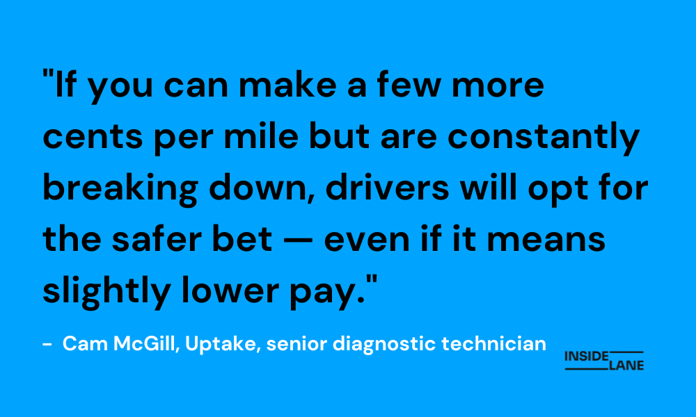 Companies like Uptake are witnessing a broader number of fleets adopting predictive maintenance to increase vehicle reliability and enhance driver satisfaction. Said McGill, "If you can make a few more cents per mile but are constantly breaking down, drivers will opt for the safer bet — even if it means slightly lower pay."
