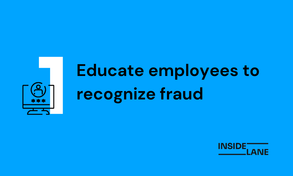 Educate team members to recognize fraud – Employees serve as a frontline defense against fraud and should be equipped with the training and resources to detect fraudulent activities. Palmer says that “employees need to be aware that there is some level of accountability so that they're less likely to commit fraud because they know their coworkers have a means of discovering it.”
